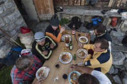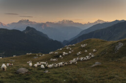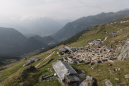 Every year in autumn, a dozen hobby shepherds ascend the steep mountainsides west of the Great Aletsch Glacier to gather the roughly thousand sheep that have grazed freely and unattended there all summer. The sheep climb to heights of up to 3000 meters above sea level. After two days of hard and perilous work, the men lead the animals down to Belalp, where the wool caravan is welcomed with a shepherd's festival. The highlight of the Belalp "Schäful" is the traditional sheep separation on the fourth day: in the old stone pen, the animals are distributed among their owners – a rodeo in the Valaisan style.