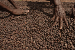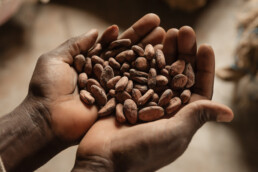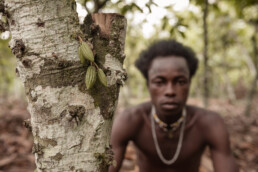 The images were taken in Côte d'Ivoire and Ghana depicting the cultivation and processing of cocoa, coffee, and maize.